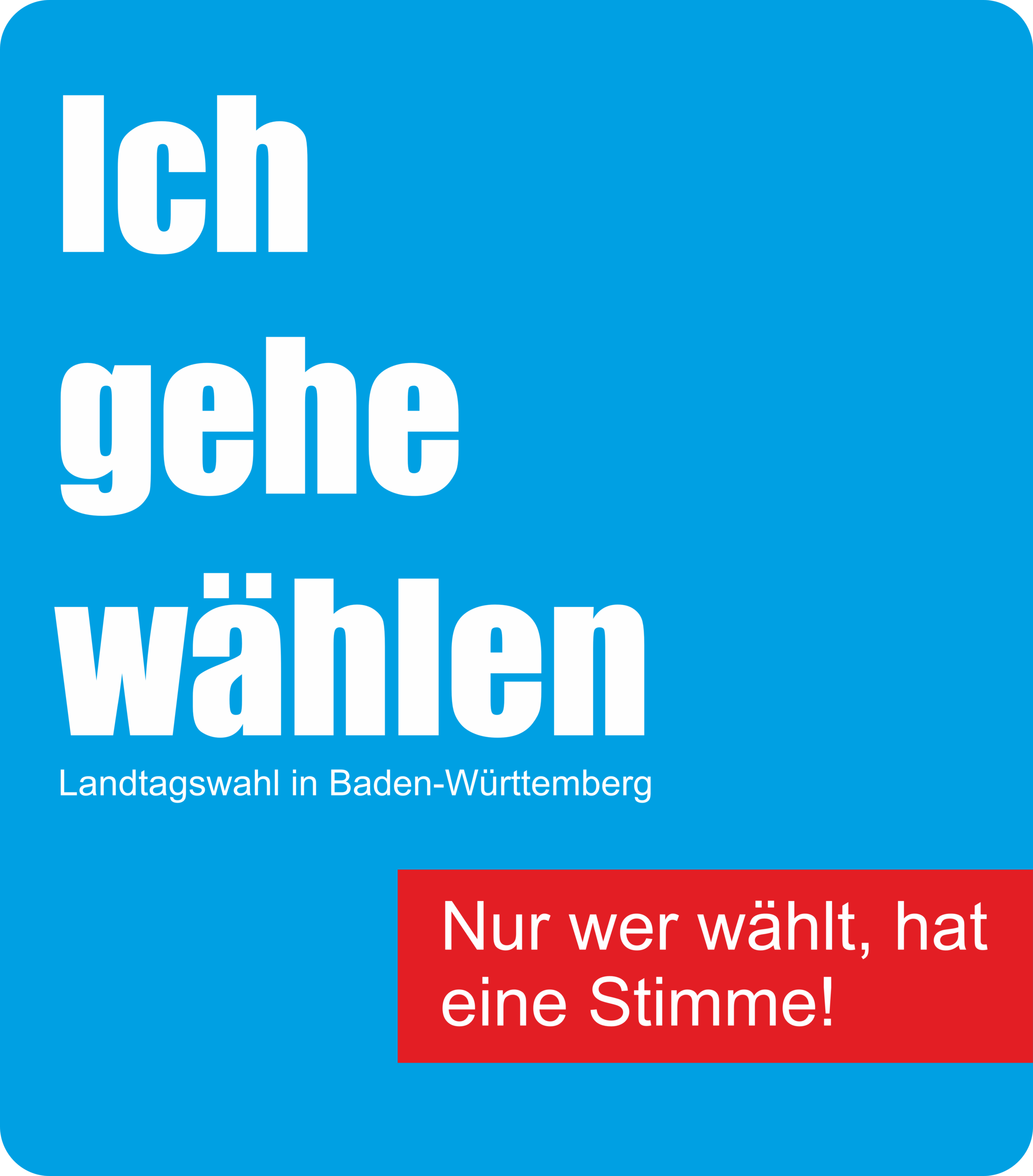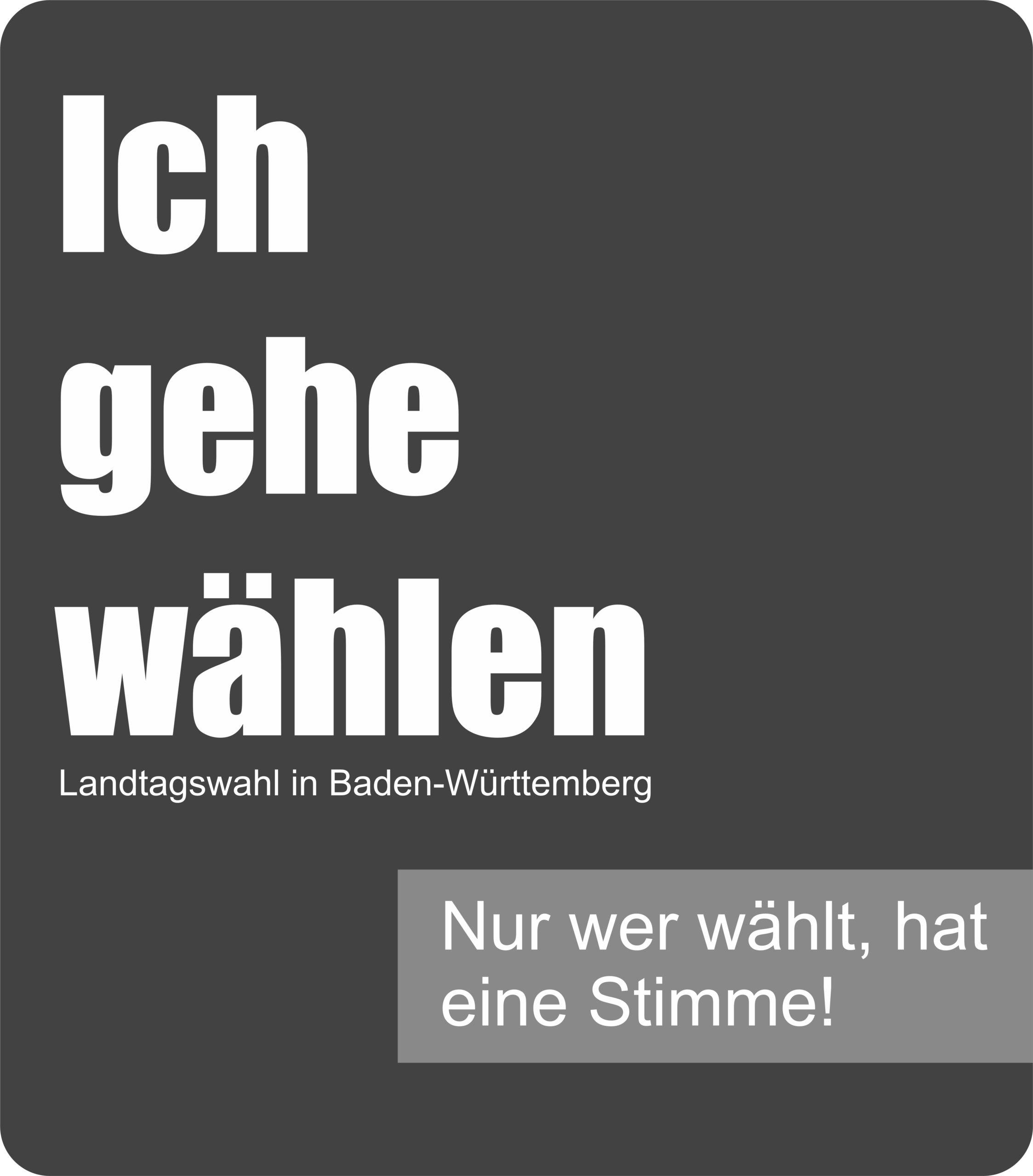 Banner Landtagswahl in Baden-Württemberg – Ich gehe wählen – Nur wer wählt, hat eine Stimme!