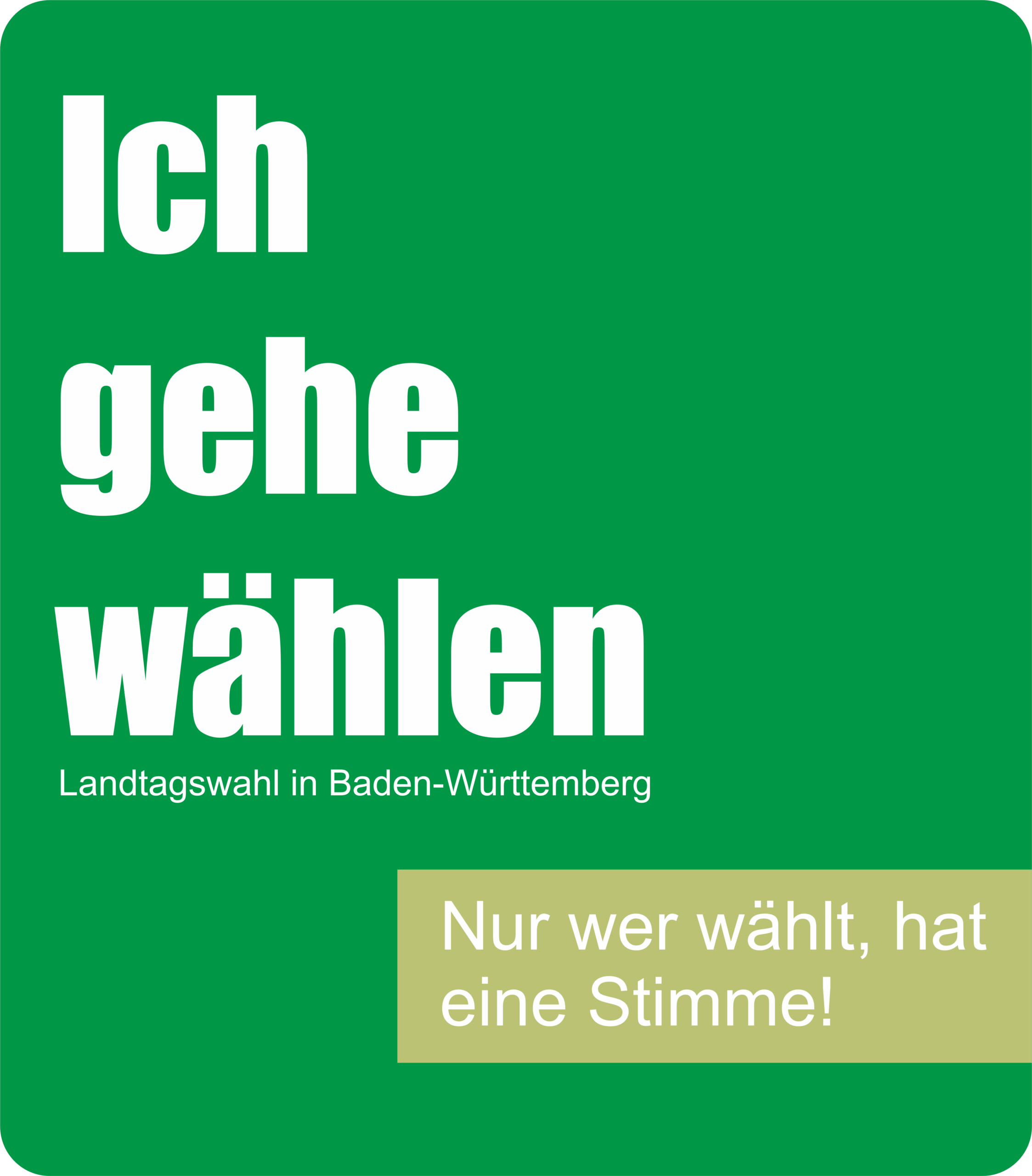 Banner Landtagswahl in Baden-Württemberg - Ich gehe wählen - Nur wer wählt, hat eine Stimme! (252 Downloads )